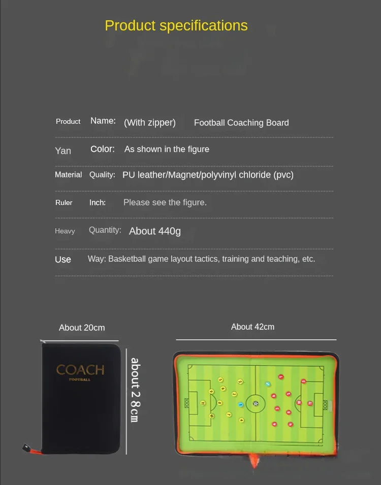 - 1 quadro táctico com o campo inteiro no interior, 2 marcadores, 2 conjuntos de ímans táticos com numeração, 1 apagador.
