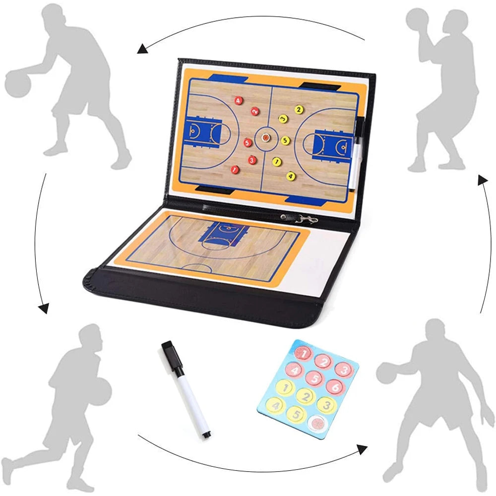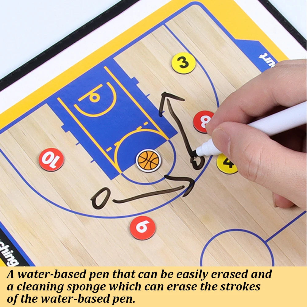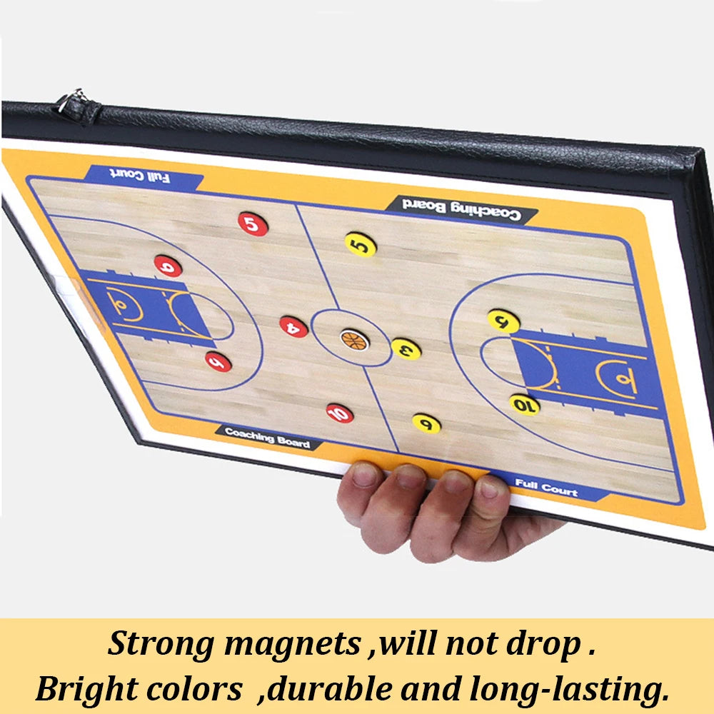 - 1 quadro táctico com o campo inteiro e outro com meio campo, 1 marcador, 24 ímans táticos com numeração, 1 apagador.