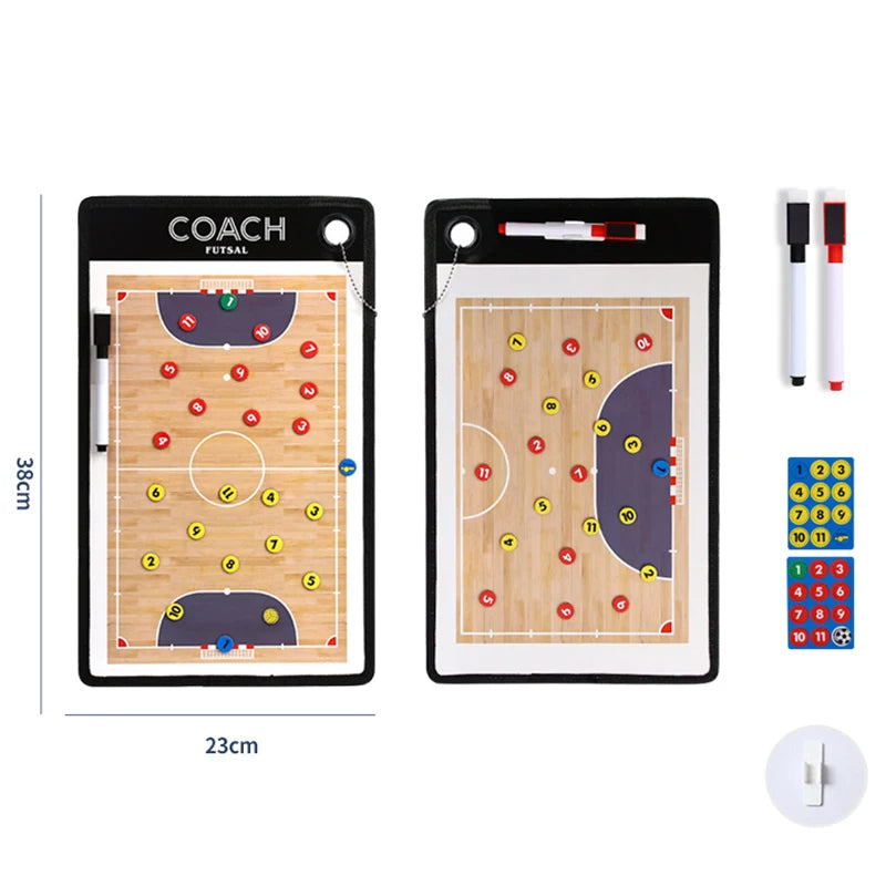 Marcadores magnéticos para uma simulação precisa: Equipado com marcadores magnéticos que representam os jogadores e a bola de futsal, este acessório de futsal permite simular com precisão posições e movimentos no campo, facilitando a compreensão das táticas ofensivas e defensivas.