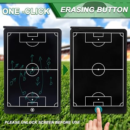 CARACTERÍSTICAS: Esta placa LCD de alta qualidade é perfeita para treinadores e jogadores de futebol. Com apenas um toque, você pode limpar rapidamente sua caligrafia, facilitando a configuração de jogadas e estratégias.